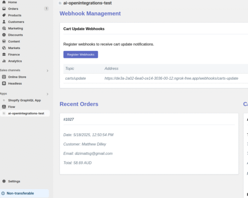 – webhook control panel (basic essentials for a shopify app) – see image below